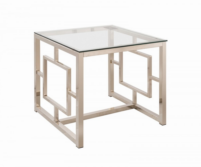 Dress up your decor with a dazzling touch of shine. This elegant end table features a stunning, shining nickel finish that beautifully reflects the light. Its top is crafted from durable tempered glass, creating a sturdy and versatile surface for drinks, snacks, or decorative accents.Read More
